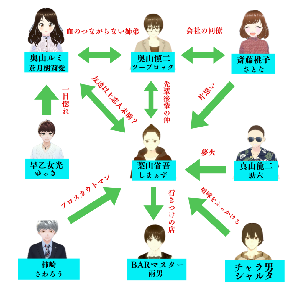 この物語に登場する人物たちの関係を表した相関図です。